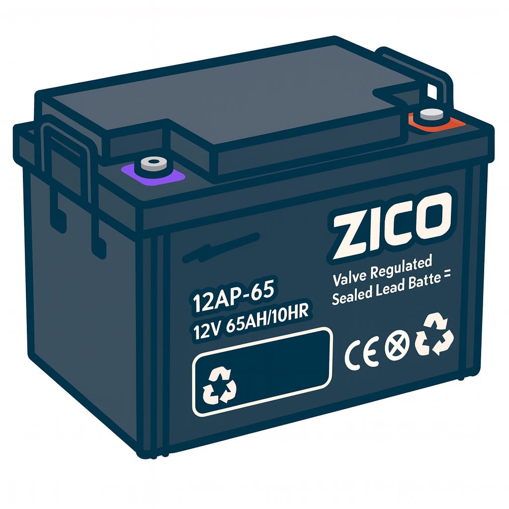 The Zico 12V 65Ah battery is a high-capacity sealed lead-acid (VRLA/SMF) unit designed for reliable backup power in demanding environments. With deep-discharge performance, long service life, and low self-discharge, it ensures stable and efficient operation. Its ABS case and gas-recombination technology provide leak-proof, maintenance-free use across a wide temperature range.