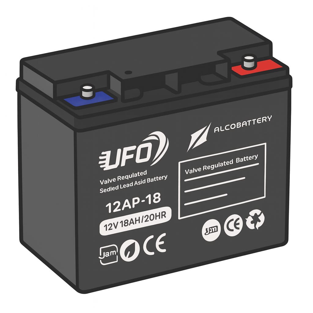 باتری UFO 12V 18Ah یک باتری سیلد اسید بدون نیاز به نگهداری (VRLA / SMF) است که برای استفاده در سیستم‌های UPS و منابع برق پشتیبان عمومی طراحی شده است. این باتری با ارائه خروجی پایدار، قابلیت دشارژ عمیق و نرخ تخلیه داخلی بسیار کم، عملکردی مطمئن و بادوام دارد. طراحی مقاوم ABS و فناوری ترکیب مجدد گاز (Gas Recombination) باعث می‌شود این باتری در دامنه دمایی وسیع به‌صورت ایمن و بدون نشتی عمل کند.